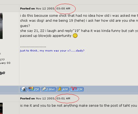 [quote name='FrestyleFC3S' date='Nov 12 2003, 03:01 AM'] is me it and you to be not anything make sense to the post of taht you made just now for the time of you making