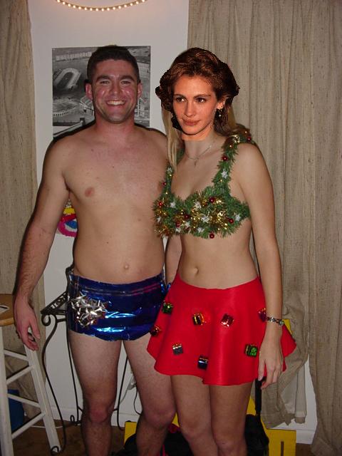 just to clairify, my date was a christmas tree, i was a present, hehe. we matched, we won the costume contest, it was fun