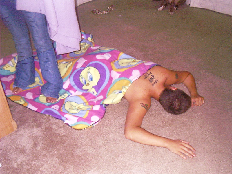 and this is the direct result of the drinking (lori covered me with the dogs blanket to be funny)