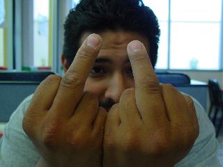Now for you calling me a kid, wow you must be a big man too fight with a "wee little kid" like me, i mean hell you got so mad you took a pic of you giving me two 1-finger salutes... wow if everyone becomes like you when they grow up I soooo don't look forward to growing up.