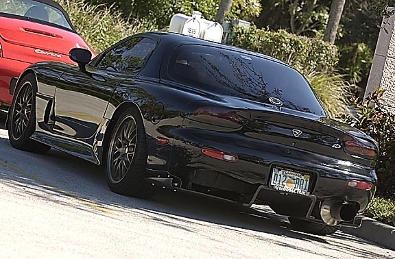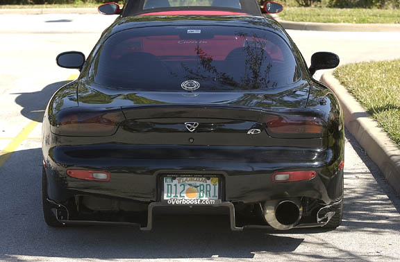 Here are a few pics as promised of Chuck's rear diffuser pro (Rotary Extreme) after installing it on my car. It hasn't taken away the desire for me to add a wing. I believe that if my car were a lighter color, the diffuser would stand out more. Tends to blend in with a black car. Let's see...color shifting silver or mango yellow... :-)