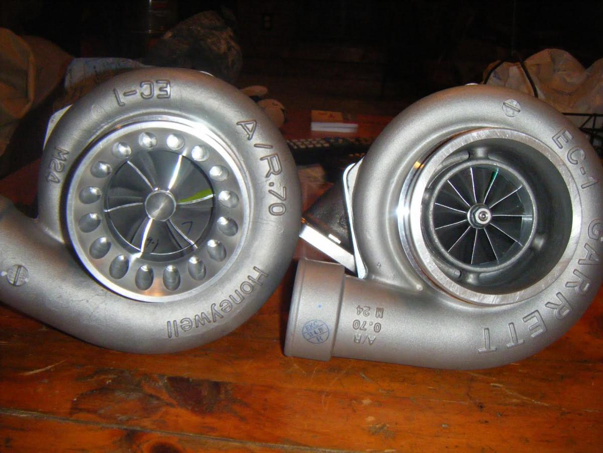 The turbo on the left is a T04Z, right is a GTX35R... the Z is mine, the 35R is my brother's for his RB25.