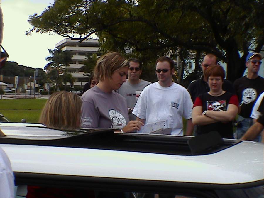 Sunshine Mini's had a little meet this weekend in Hollywood Fla. It was pretty fun we had to tear around town finding clues that would lead us to a final destination point for a BBQ. The prizes were awesome! Like a luggage set that cost over $500 and is made just for Mini's. I won a t-shirt in a raffle. I sucked at the clue section of the rally nothing was clicking in my brain today. I was good at driving real fast between destinations though.