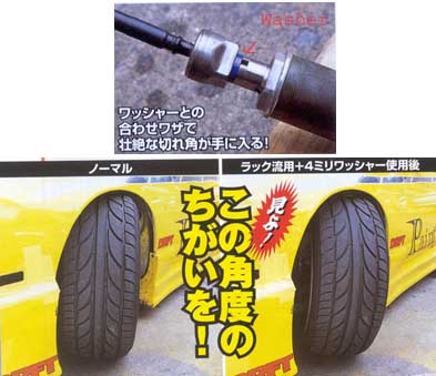 an now that i understand the pricipal of the device I will be making a tredded insert that threads into the steering rack and the tie ros will thread into it to maximise the steering of the FC. you WILL need a lesser offset wheel to clear the sway bar.