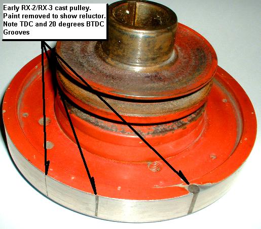 Here is a picture of the poor old RX-2 front pulley. The picture is captioned.