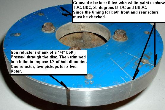 I made an aluminum disc a bit larger than the degree wheel. With a spigot to locate it in the center of the stock cast iron pulley. And bolt it on using the original bolts. The disc is installed on the pulley and the pully is marked for a single reluctor.