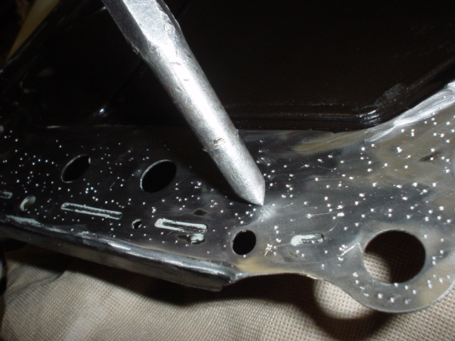 This simple but effective modification works really good for the messy oil leaking third gen's oil pan. In the pictures you will see how I punch the engine and oil pan sligthly with a sharp point chisel. When this is done the oil pan and engine become abbrasive and will not allow the silicon to slide easily away from the surface of the oil pan and creating a better seal when the permatex is applied. I have yet to see an oil pan leak since I started doing this simple mod. I hope this is of some help.