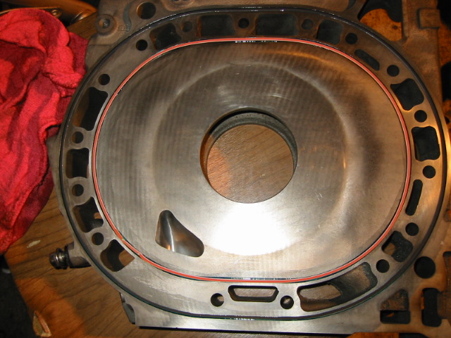 Here is a shot of where they go in the engine. A rotor housing would then go on to of this sealing the combustion chamber. The coolant seals are the orange ones.