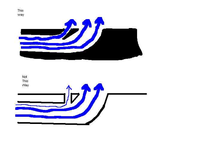 Yep, I did exactly that. That was one of the things I had originally planned on doing. It's hard to see from the pictures but I did angle the first set of short and long radii prior to the eyebrow cut. I believe it helps out substantially; I suppose we'll find out once the engine breaks in.