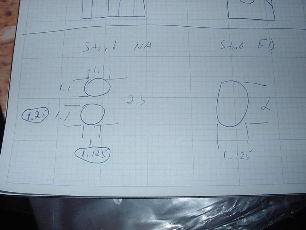 some dimensions i took on the housings , i want to join the 2 hoels on the NA it only seems appropriate for teh size port that it needs to flow. i also measured the FD for comparison.