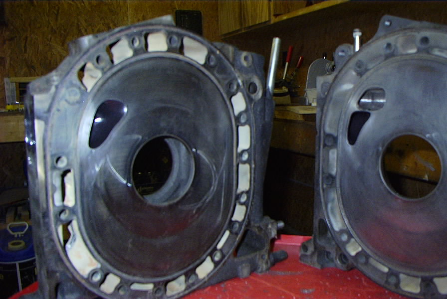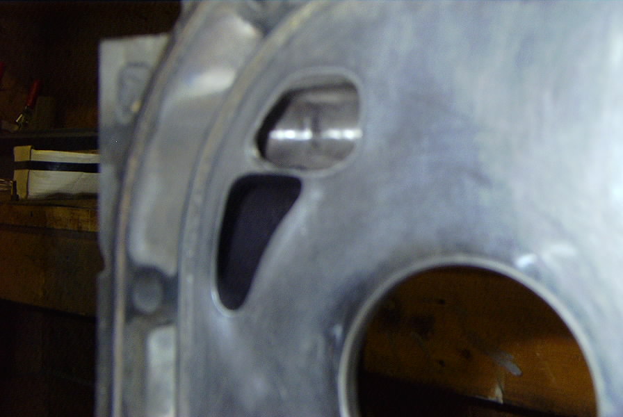 I did some more playing with the grinder in the endplate ports today. Here is an inward shot of the roofs and runners of the ports. I cut into the sixth port sleeve a bit to blend it in with the flow of the roof and sides of the port.