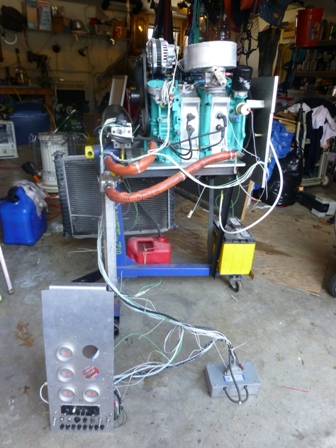 Engine running on engine stand with radiator and rx7 oil cooler.