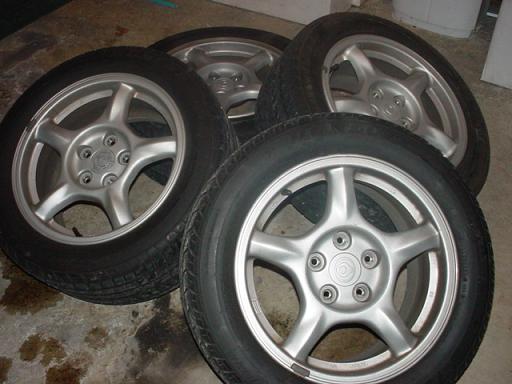 I am selling my stock wheels off my 94 FD. They are in great condition and the tires have about 50% tread left on all 4. The tires are Dunlop Sport 4000(f) and Dunlop Sport 8000®. I will have pics tonight of the wheels and tires.
