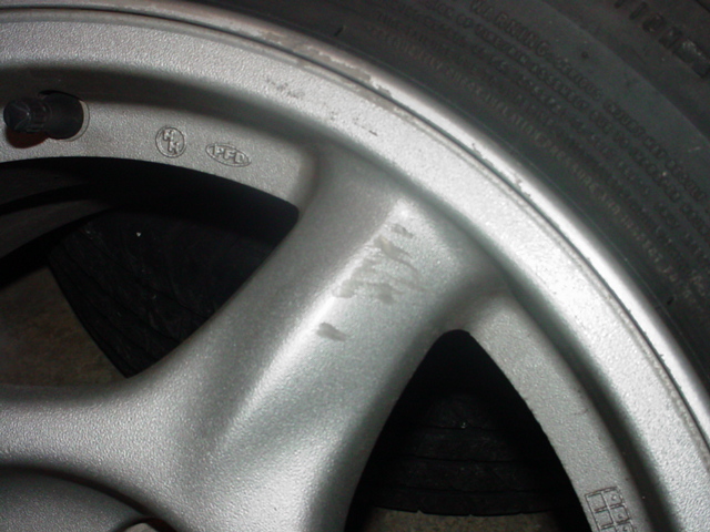 Here is the worst flaw of all of the wheels....it is a scuff on one of the spokes of one of the wheels.....the other 3 wheels are in great condition, except a very small blemish on the lip of one of the other 3...just a small section of curb rash.