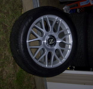(4) 16x7 Z Racing wheels with Nitto NT 450's 205/50r16 on them. I had them on my 86 SE (4-lug) and only ran them for 3 months before switching to my winter wheels. They have the Enkei-style 8 lug hole design. Offset is +40.