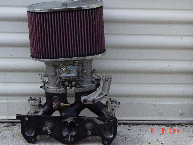 1. 44 IDF webber with k&N filter kit. Intake manifold has 2 injector bosses plumbed in secondaries ports so that you can use a additiional injector controller. 500.00 + shipping