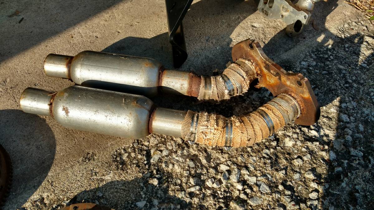 -Racing beat exhaust flange with ludicrously short glass packs: $20.00