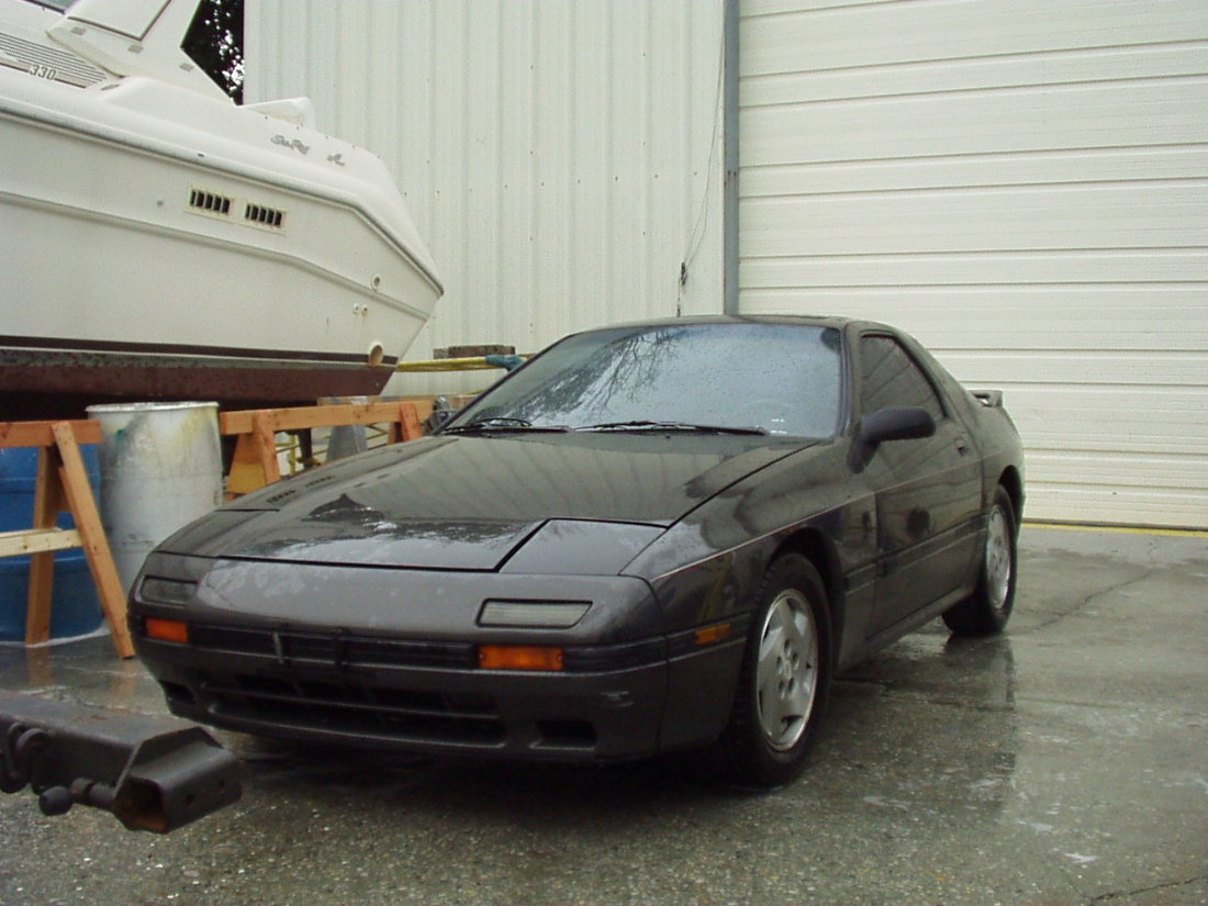 Just throwing out a feeler before I do any work on the car, its a 1987 GXL, located Long Island New York, has all the options except leather. Adjustable suspension, 4 pistons brakes, 5 lug wheels, etc... ITs charcoal grey with maroon interior, the interior is in great shape, Im having a seat guy sew up the bolster on the drivers side ( the one that wears thru on every RX-7 out there, this one the seam split though) before the car gets sold. It runs very good and is quiet,meaning it will pass emissions no problem, I was going to get a New York state inspection before the car gets sold, as well as the following before selling it: changing the oil/filter as the previous owner had flooded it out pretty good before I got it, new plugs, coolant and thermostat. Has a new fuel filter and air filter as well. It drives good from what I have driven it. I will also detail the car out, I used to own my own detail shop, so this isnt a biggie. It has no major body damage, the usual dings, although they are only on the passenger door, at one time before I got the car the other side must have been fixed as there isnt a dent in the drivers side at all. I thought about keeping it, but I already own another RX-7 convertible, as well as a convertible seven that needs a motor, a jeep, and a Lexus, there just isnt any more room for this car.Any questions shoot me a pm. Like I said, I dont think there will be a problem for me to sell this car in the newspaper, I just figure I would see if anyone from the board, or someone they know, wanted the car. It has 110,000 miles by the way. Tires are great, no need for replacement there. Here are some pics, the car is wet in them by the way: I am asking $1800 but I am very negotiable of course, the more I fix, the higher the car will be, like if I was to paint the whole car, but honestly the paint is in better shape then most I have seen for the year, so keep that in mind when you ask questions