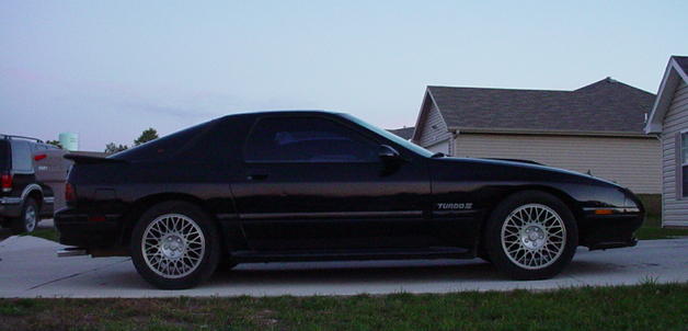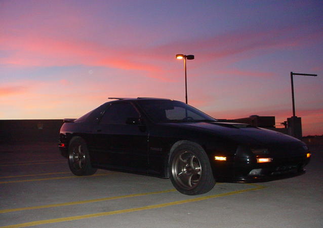 She is a 1990 S5 Mazda RX-7 Turbo TII....Black Exterior, Black Interior, 5 speed, with 124,xxx miles on what I believe to be a stock motor. I bought it bone stock...it was a one owner car. I have since added a few things to make it run, handle, and look better. She is now equipped with the following parts: