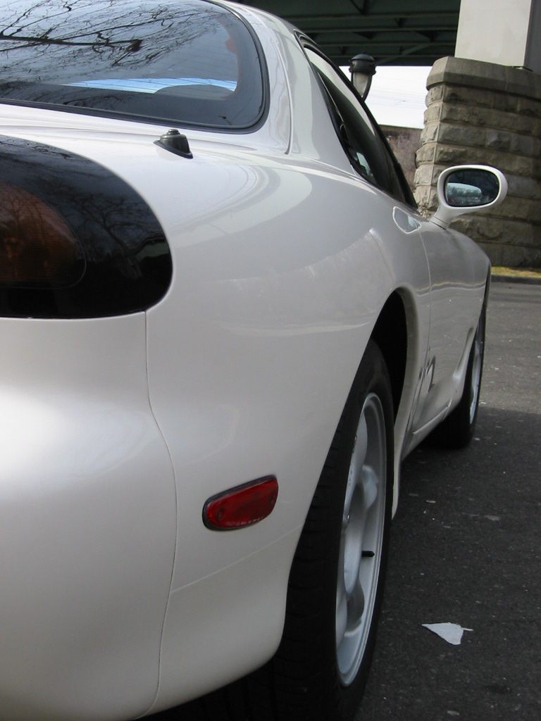 I’ve decided to sell my car . It’s a white 95 with 63.5k miles on the original engine and turbos. The mods are in my sig and I have every reciept for the time that I’ve owned it that will show that I've put >$10k into the car. The car is in exceptional condition. There is NOTHING wrong with it mechanically, and the exterior is beautiful. The interior is perfect with VERY slight wear on the drivers seat. The front drivers side bumper has a small dent in it that was from the previous owner and is so not noticable that I haven’t cared to fix it. In fact, you can’t even see it in the pics. The compression is 7.1-7.2 on all rotor faces and she pulls a 17inHg vacuum consistantly since I bought her. It’s been dynoed at KDR and gave 300 rwhp and since been re-tuned by Dee of reactive racing. I’ve been driving it daily for a year and it has never give me any major problems (omp, air pump, coolant line, 5th gear synchro, ... etc. all have been fixed). Everyone who sees the car tells me that it’s one of the nicest that they’ve seen. There were only 33 white 95 (manual) rx7’s imported into the US ( http://alecto.bittwiddlers.com/vehi...7-numbers.shtml ). It’s a PEP package, and besides all my mods, has a very nice aftermarket stereo and speakers (no crazy woofers or anything, just a nice sounding stereo). I also have two years left on an aftermarket warranty that has already covered $2600 worth of repairs with my mods (have reciepts).