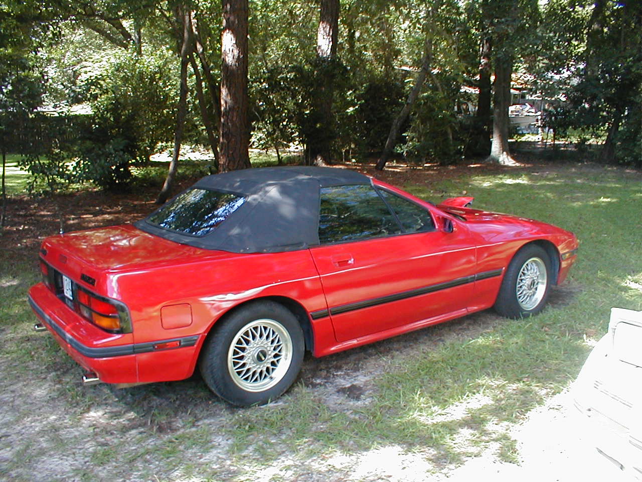 For Sale 88 RX7 Convertible- Red with Grey Cloth Interior. Car's drivers side fender and nose cone are damaged and will need to be replaced, but does not affect car's driving. Car has very good top, good dunlap tires, good interior, new center console. Car is a five speed. Asking $1,800. Pictures available upon request. Car is located in Thomasville, GA.