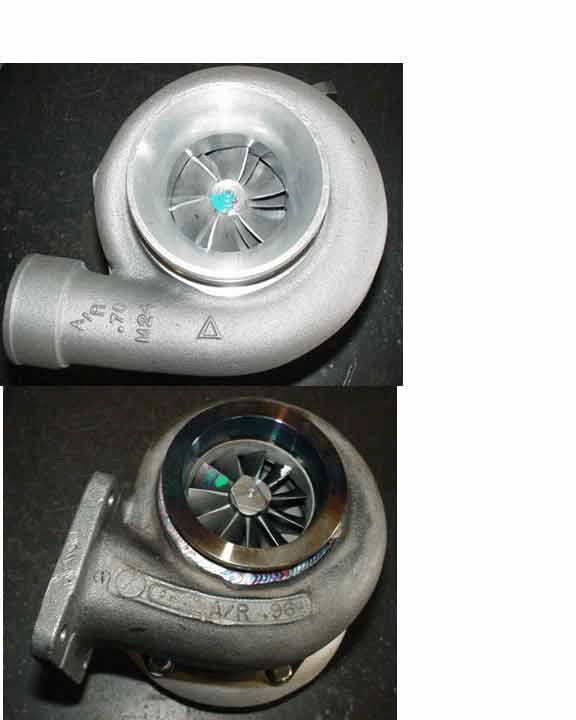 ok.. here's a close up of my T04-R.. I get boost around 4000.. Its not quite a kick in the *** like what twinturborx7pete said.. but its a damn good push.