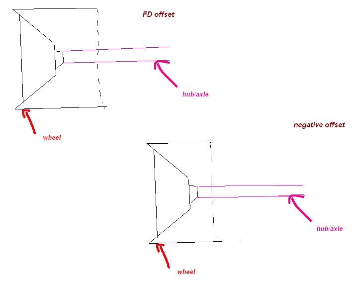 Imagine that the negative offset rim is the same size, that pic just illustrates the problem that the inner side is way to close to the center of the hub putting more stress on it.