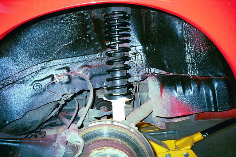 I put new shocks/struts and springs on the ragtop. Kyb gr-2 struts, Kyb shocks. Springs are Eibach 37/98 on the front, and 43/98 on the rear. It lowered the car about 1" overall. I need to buy a set of bars as well, if anyone has a suggestion, ill spend around 500 which should be enough. Does any one have a similar set-up? I would like to run 17"x9" or 9.5" on 40 series rubber but im not sure of the fit with the new springs
