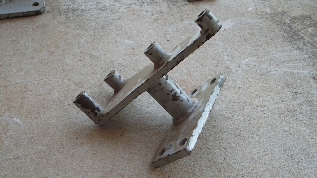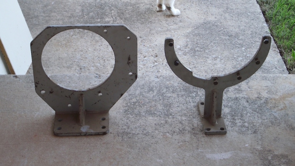 I agree with your guess, given the bulk and thickness they're jigs for engine dis-assembly/re-assembly. Maybe early versions of our engine stand adapters?