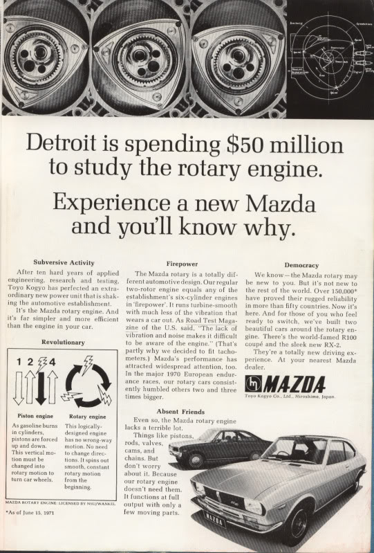 I am writing a Mazda rotary car history book. If anyone has or could take some nice high resolution pictures of their car (exterior, interior, engine bay, any rotary R100 to RX-8, can be standard or modified) for the book, please send me a message. Thanks, Marc.